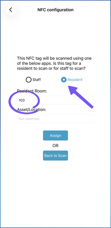 | As an example, in this screenshot we choose to assign this for Staff to use to identify Resident Room 103. | ![]() |